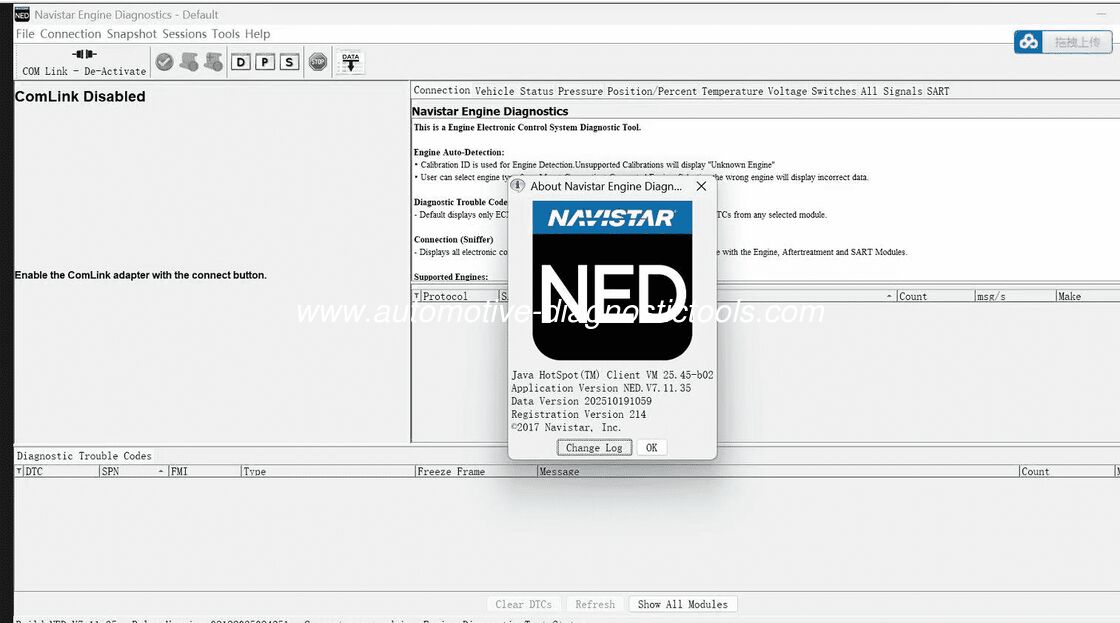 Le logiciel de diagnostic du moteur Navistar (NED) 2025.10