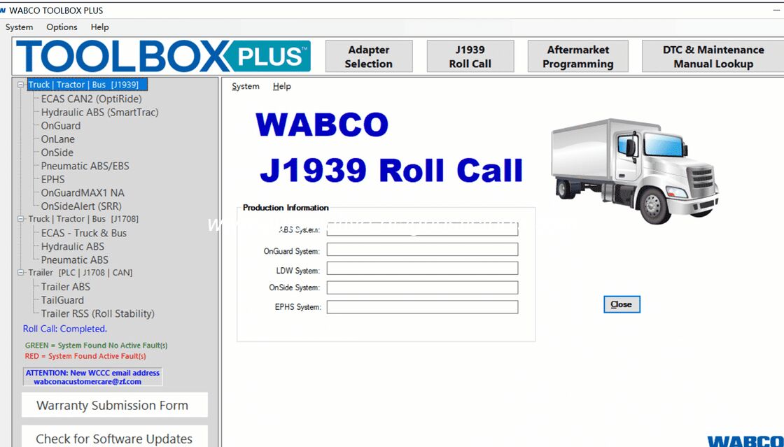 BOÎTE À OUTILS ABCO PLUSest un logiciel de diagnostic avancé conçu pour prendre en charge la gamme complète de produits WABCO, y compris les systèmes ABS, de contrôle de stabilité et d'atténuation des collisions. Il permet aux techniciens d'effectuer efficacement des diagnostics, des tests système et une programmation ECU à l'aide de diverses interfaces prises en charge.
